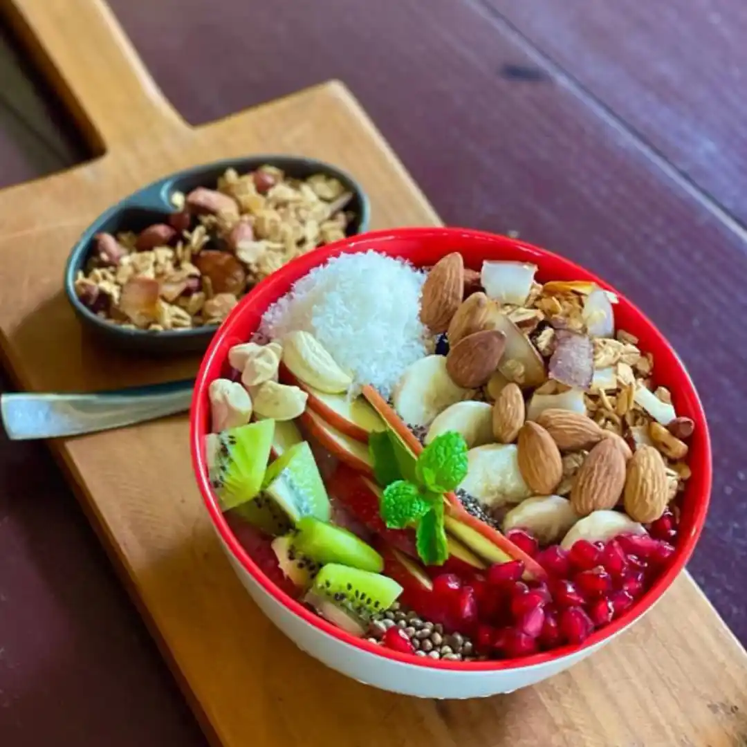Acai, banana, coconut milk, pomegranate, apple, topped with granola & mixed seeds
