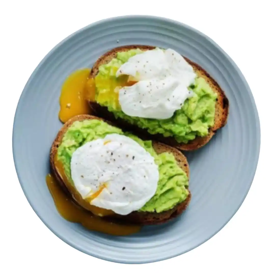 Avocado with paprika, tomato, sesame seeds, chia seeds & lettuce on two slices of toast, with egg