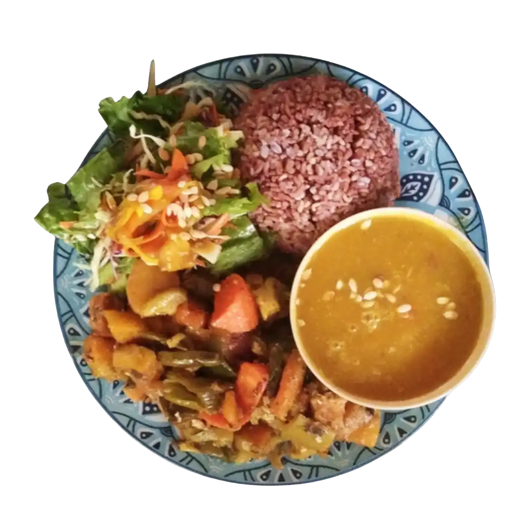 Protein rich quinoa, tossed with creamy avocado, tomatoes, cucumber, red onion, fresh herbs & zesty lemon dressing